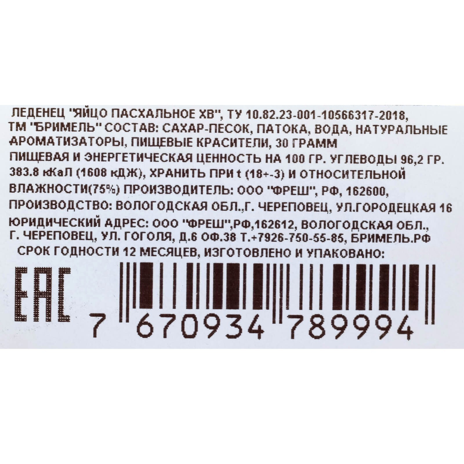 Леденец "Яйцо пасхальное ХВ", 30г 7609994