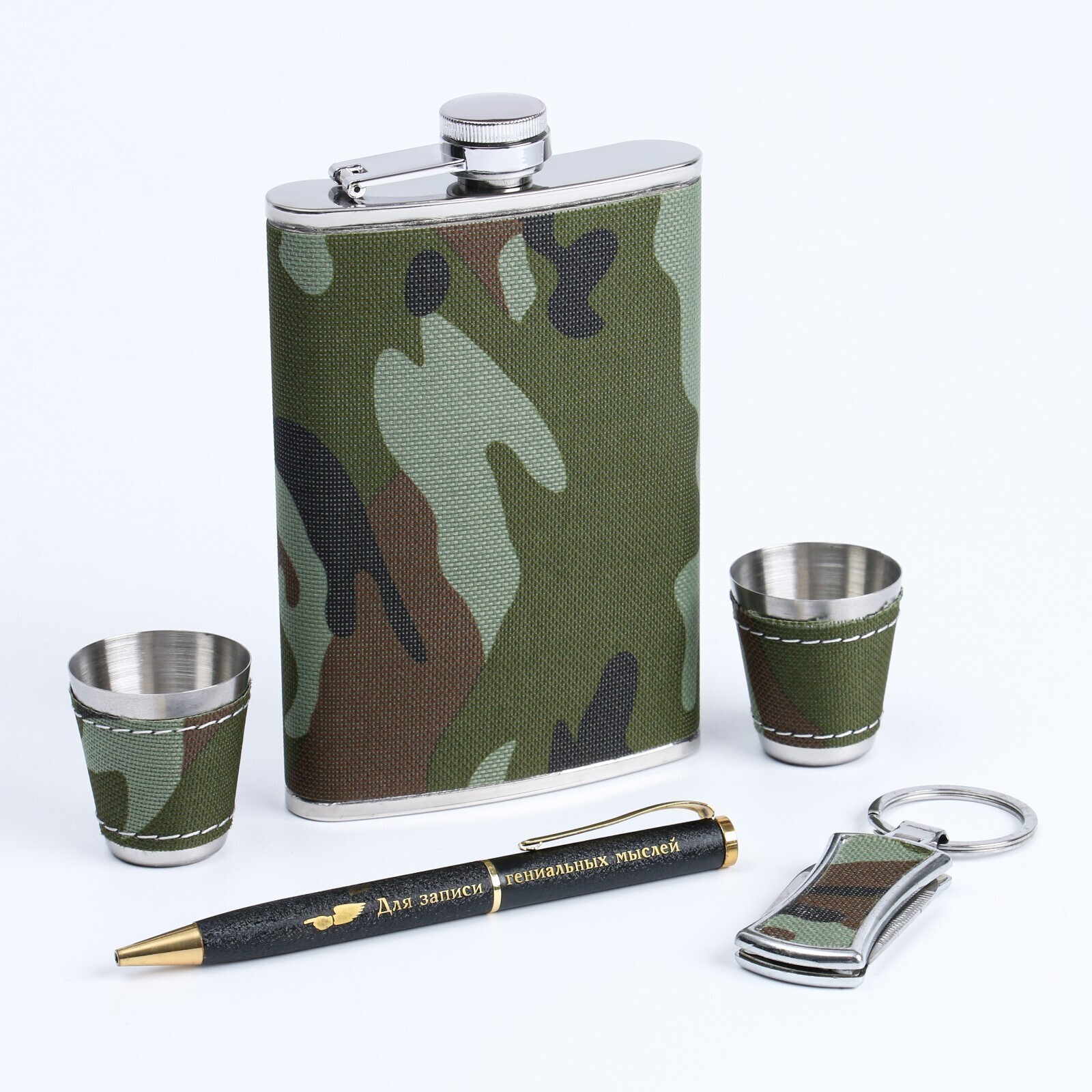 Подарочный набор 5 в 1 "Хаки": фляжка 270 мл, ручка, воронка, 2 рюмки, микс 739606