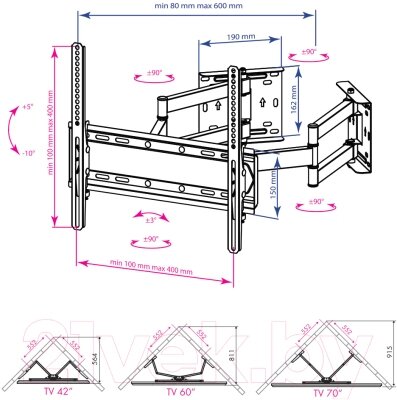 • Поддерживаемый стандарт VESA 100×100, 200×200, 300×300, 400×400, 200×100, 400×200, 300×200, 400×300, 200×300, 200×400, 100×200