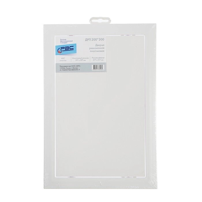 Лючок ревизионный "РВС", 200 х 300 мм, пластик, белый