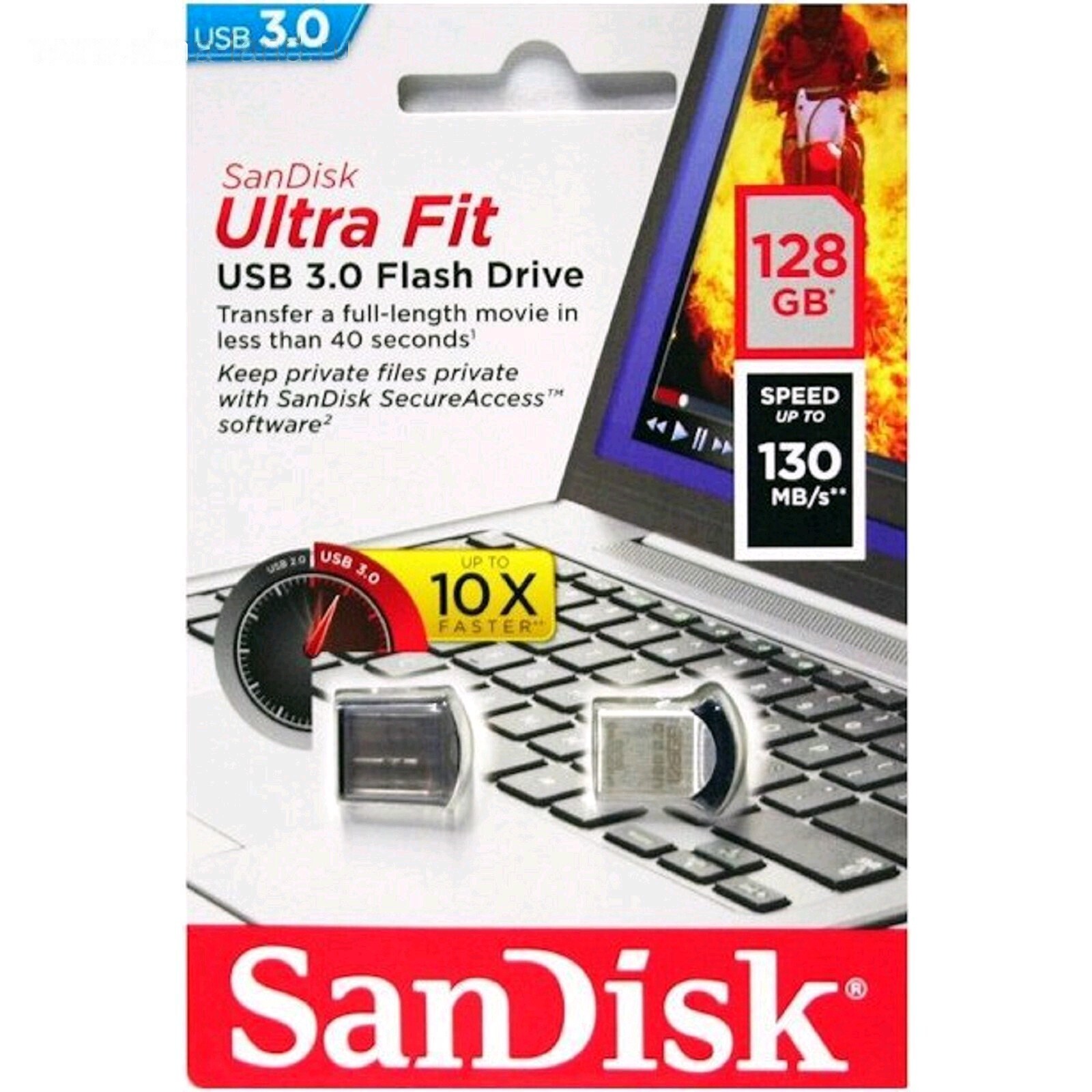 Флешка USB 3.0 SanDisk Cruzer Ultra Fit SDCZ430-128G-G46, 128Гб, чёрный 5100047