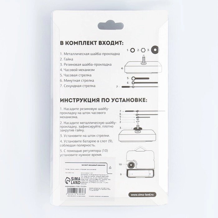 Набор "Соломон-15" часовой кварцевый механизм плавного хода, шток 16 мм, со стрелками
