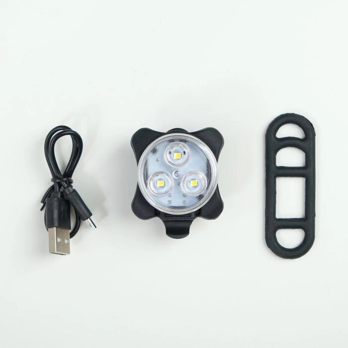 Фонарь велосипедный аккумуляторный 3 Вт, 400 мАч, влагозащищённый, зарядка USB, 3 режима