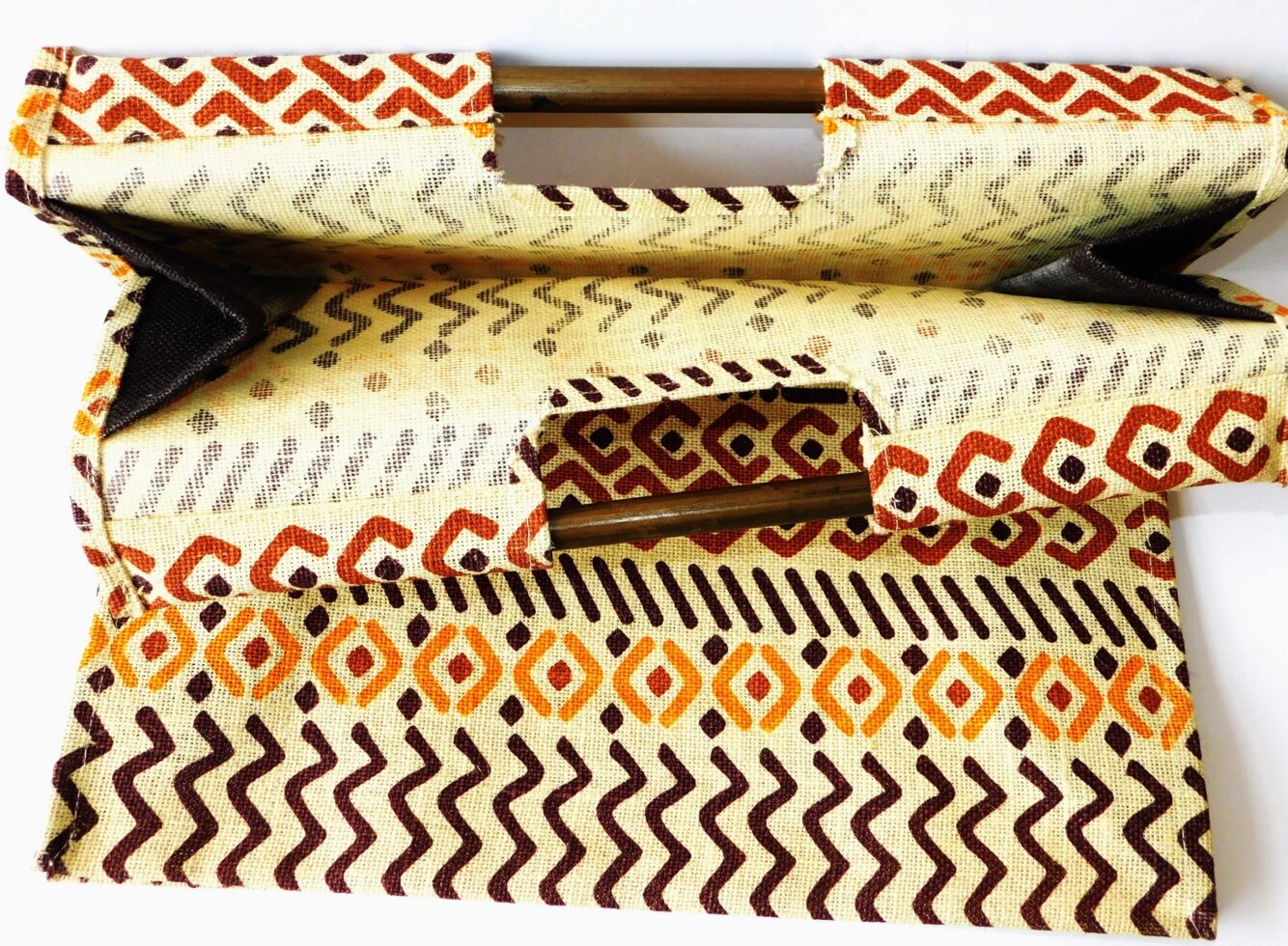 Сумка джутовая с ручкой из бамбука квадратная 46*46 см