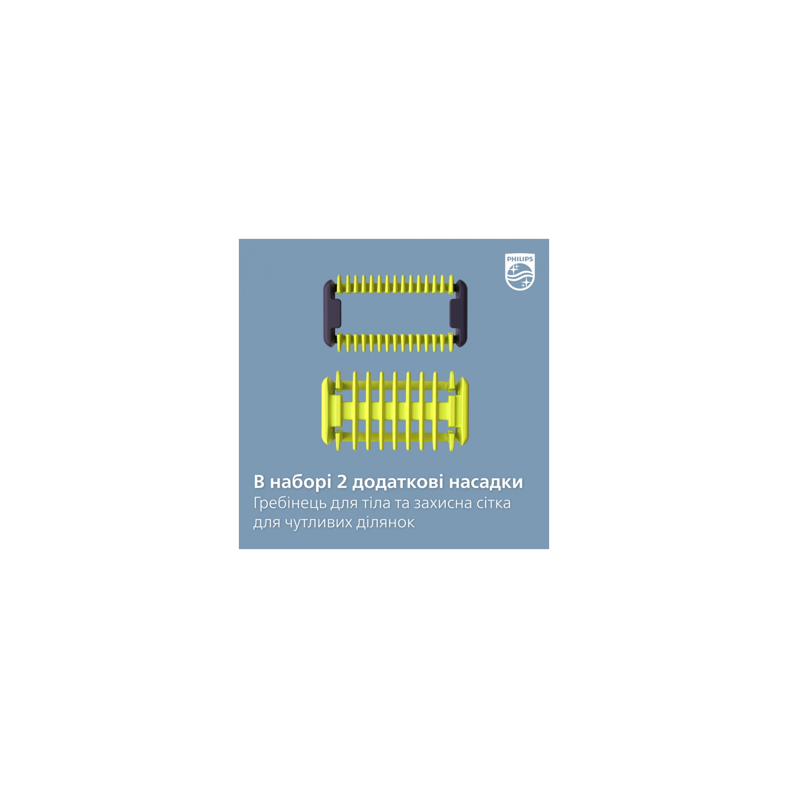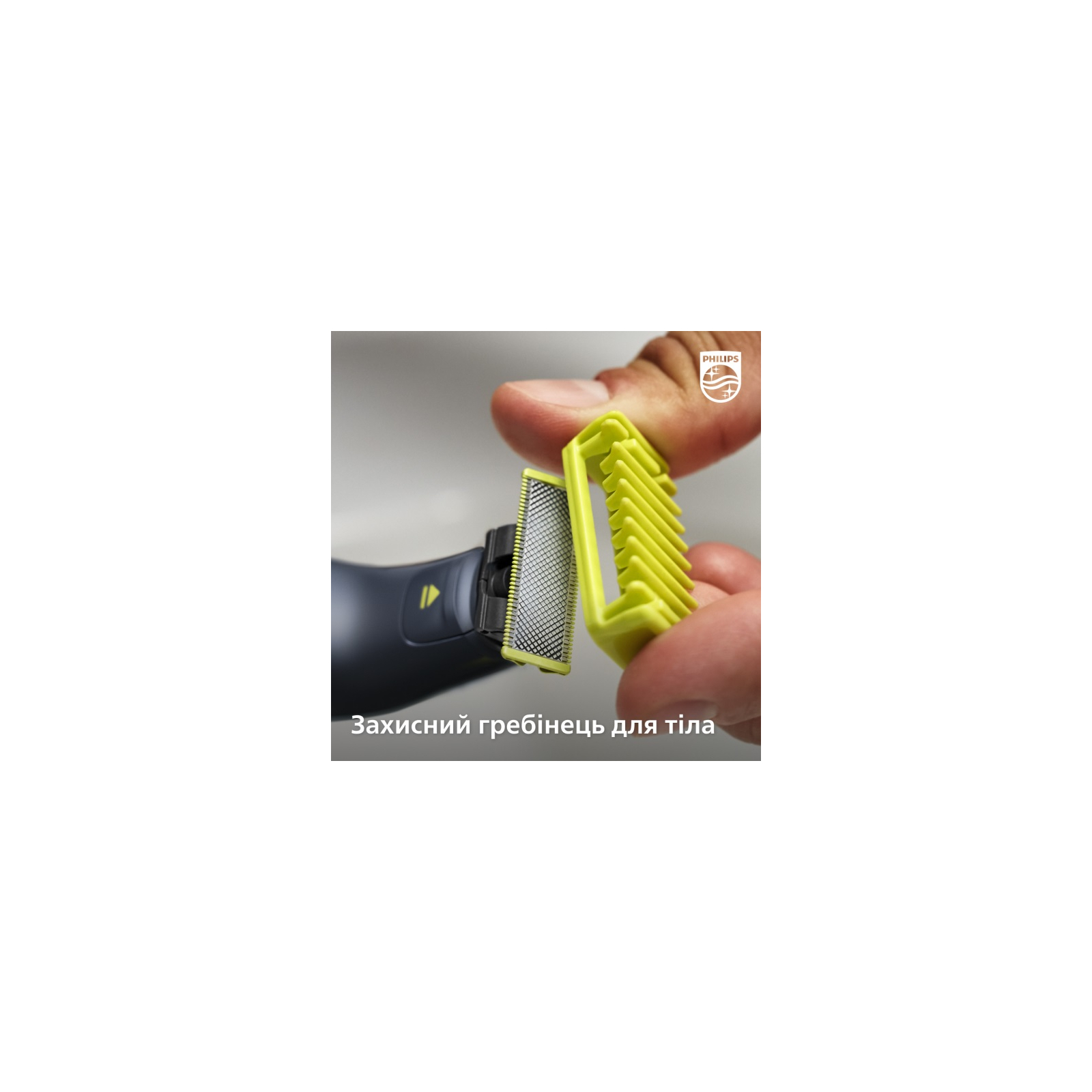 OneBlade голить не так близько до шкіри, як традиційна бритва — тому вашій шкірі комфортно. В наборі 2 додаткові насадки: гребінець для тіла (3 мм), а також захисна сітка для чутливих ділянок та інтимних зон.