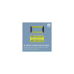 OneBlade не голить так близько до шкіри, як традиційна бритва — тому вашій шкірі комфортно. Рухайтеся проти росту волосся і легко зголюйте волосся будь-якої довжини на обличчі або тілі. У комплекті два леза — для обличчя й тіла.