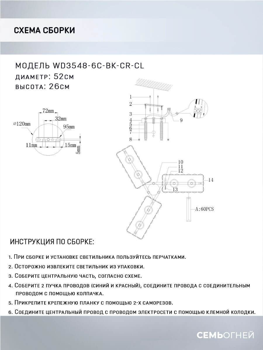 Потолочная люстра Seven Fires Berit WD3548/6C-BK-C... WD3548/6C-BK-CR-CL