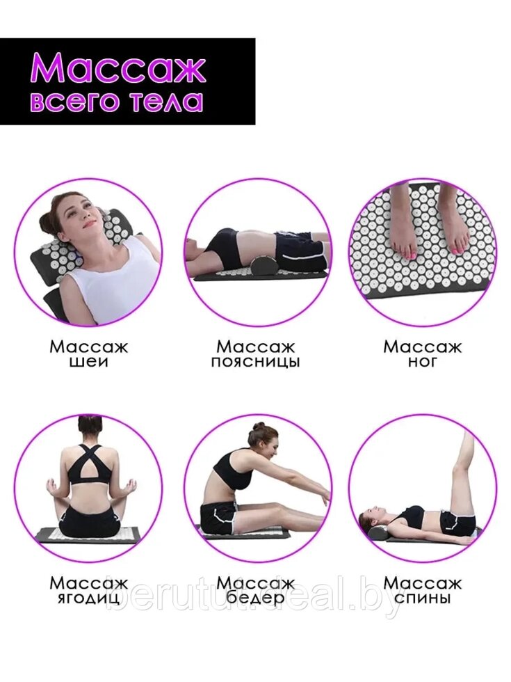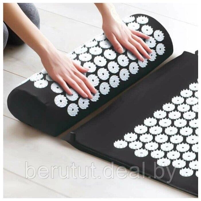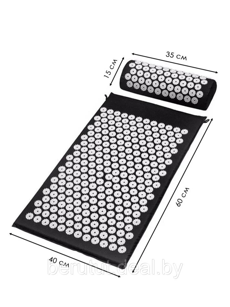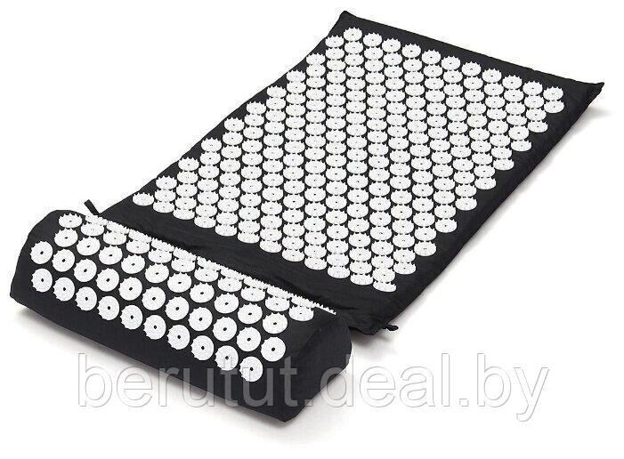 Массажный акупунктурный коврик-аппликатор Кузнецова с подголовником (Черный)