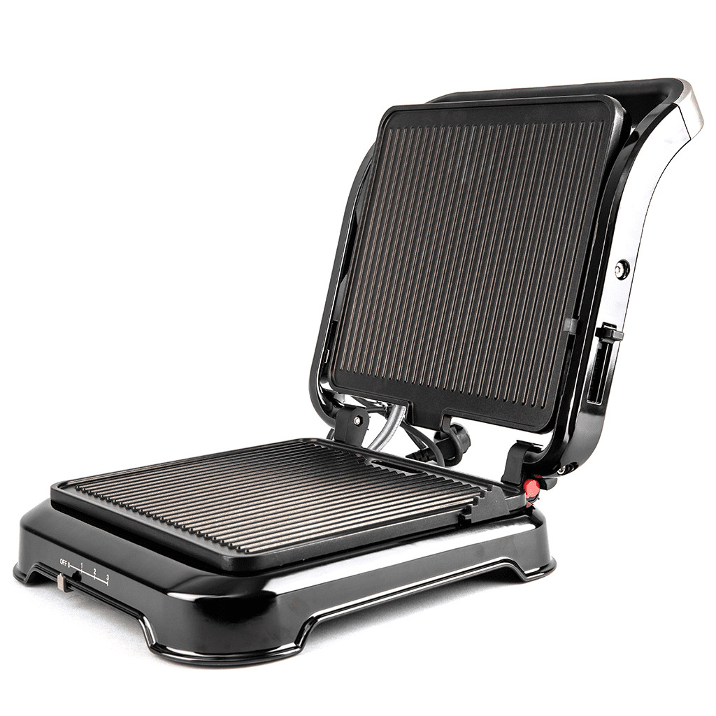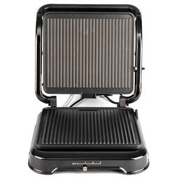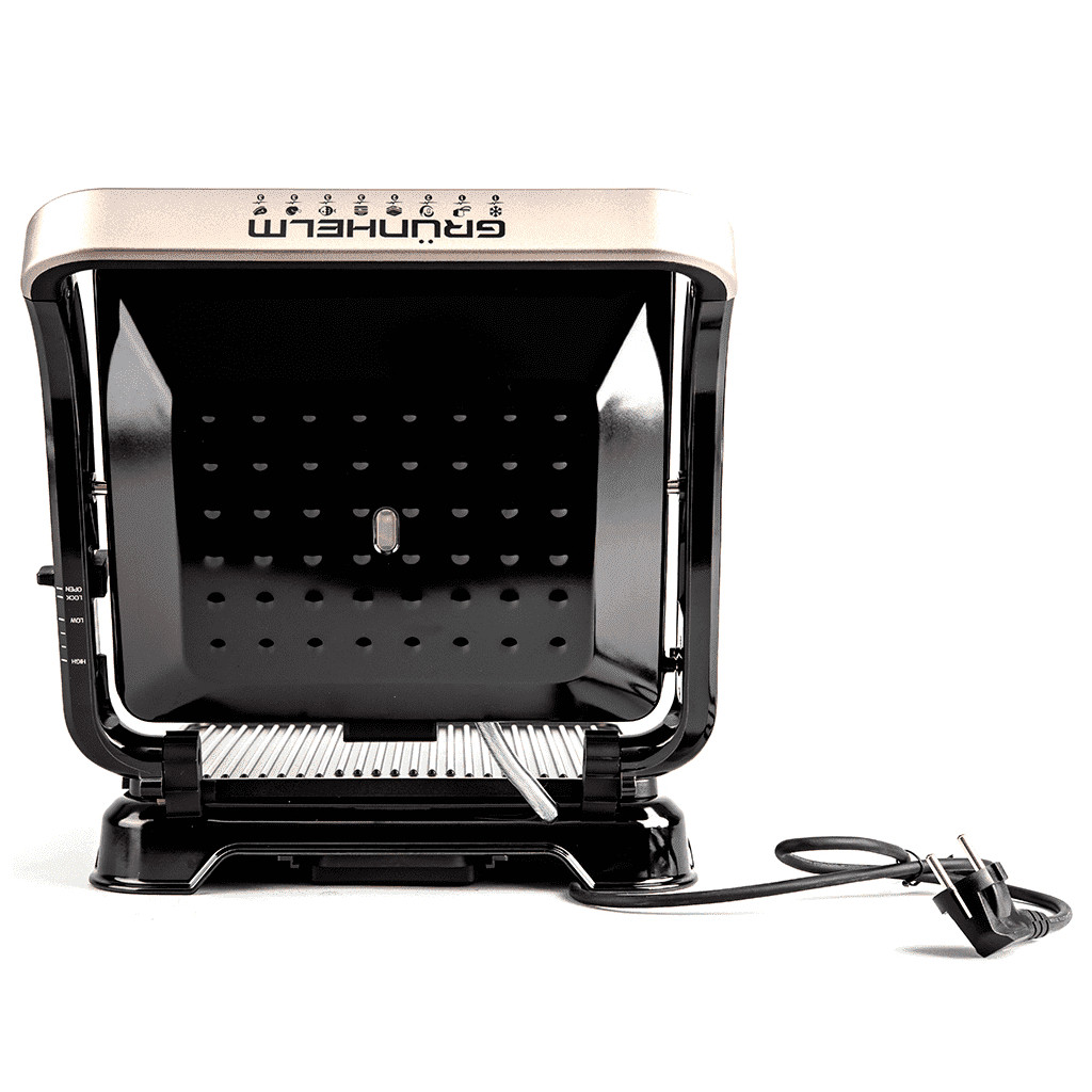 Електрогриль Grunhelm G2013 смажить м'ясо, картопля та рибні стейки, підігріває продукти, готує гарячі бутерброди та овочі. За рахунок антипригарного покриття панелей смажити в грилі можна практично без олії – страви не пригорять і будуть менш калорійними, корисними та смачними.