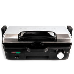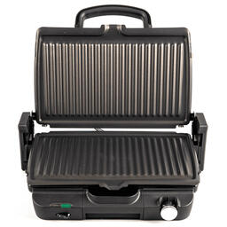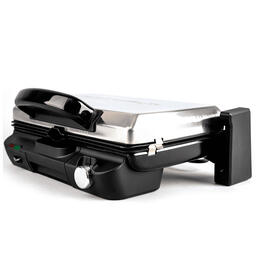 Електрогриль Grunhelm G1866 смажить м'ясо, картопля та рибні стейки, підігріває продукти, готує гарячі бутерброди та овочі. За рахунок антипригарного покриття панелей смажити в грилі можна практично без олії – страви не пригорять і будуть менш калорійними, корисними та смачними.