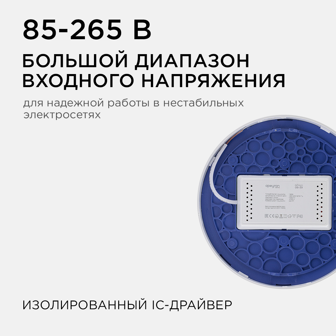 Панель светодиодная (круг) 06-39 18Вт 2700К D170мм Apeyron