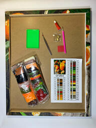 - Комплектация холст на подрамнике, стразы в zip-пакетиках, пинцет, стилус с воском, пластиковое блюдце, клей, крепежи для подвешивания.