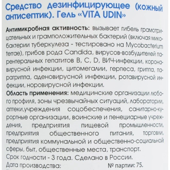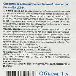 Антисептик для рук VITA UDIN с антибактериальным эффектом, с дозатором, гель, 1 л
