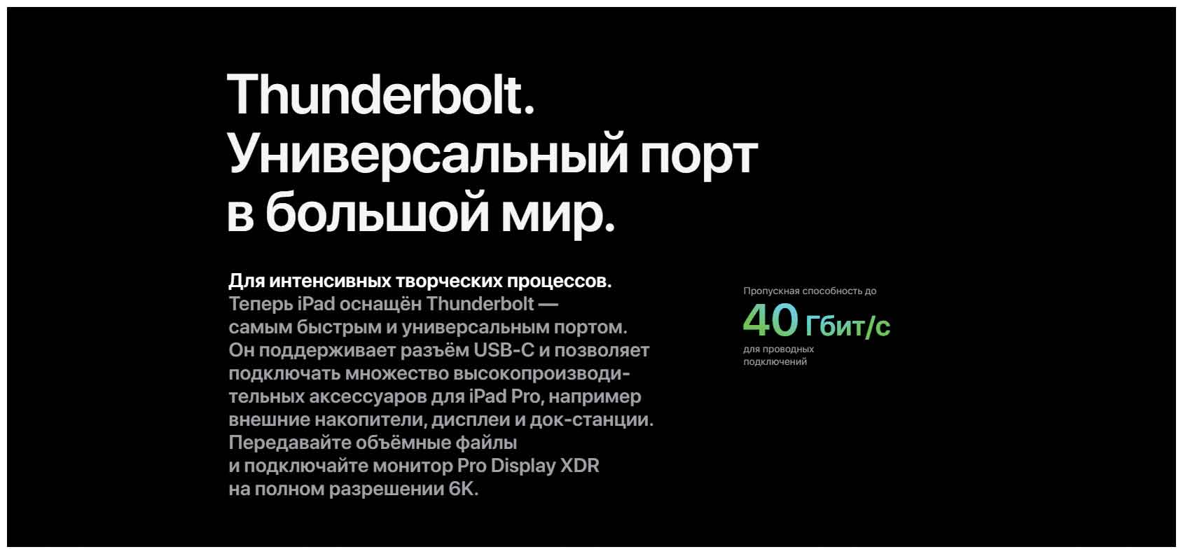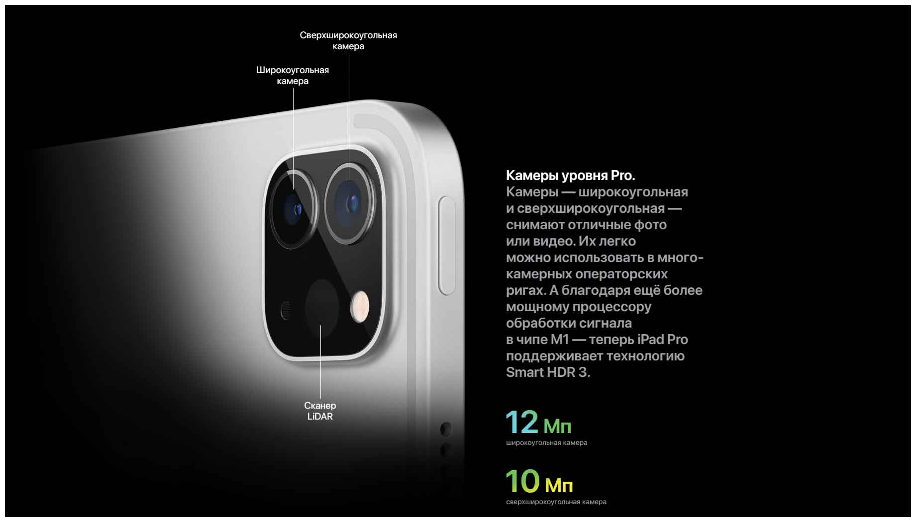 iPad Pro 11 (2021) Wi-Fi — очень мощный планшет от компании Apple 2021 года. Особенность этой серии — уникальный чип M1, который также используется в MacBook Pro и Air, Mac mini и iMac. Уникальные технологии чипа обеспечивают высочайшую производительность, а его энергоэффективность позволяет целый день работать без подзарядки. С восьмиядерным центральным процессором можно создавать сложные модели с дополненной реальностью и играть в игры с графикой консольного уровня и высокой частотой обновления кадров. Дисплей Liquid Retina передаёт каждую деталь с большой реалистичностью. Он отлично подойдёт для работы с фото и видео или для просмотра любимых фильмов и сериалов, поддерживает самые передовые технологии, такие как широкий цветовой охват, True Tone и ProMotion. iPad Pro 11 оснащён сверхширокоугольной камерой с матрицей на 12 Мп и углом обзора в 122 градуса. Новая функция «В центре внимания» позволяет снимать выразительные селфи в портретном режиме и идеально подходит для звонков по FaceTime. Теперь, передвигаясь по комнате во время звонка, вы всегда остаётесь в центре кадра. Ещё одна особенность iPad Pro 11 — это Thunderbolt, самый быстрый и универсальный порт. Он поддерживает разъём USB C и позволяет подключать множество высокопроизводительных аксессуаров.