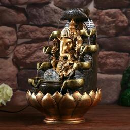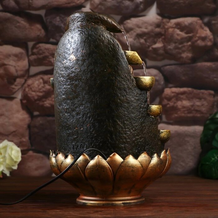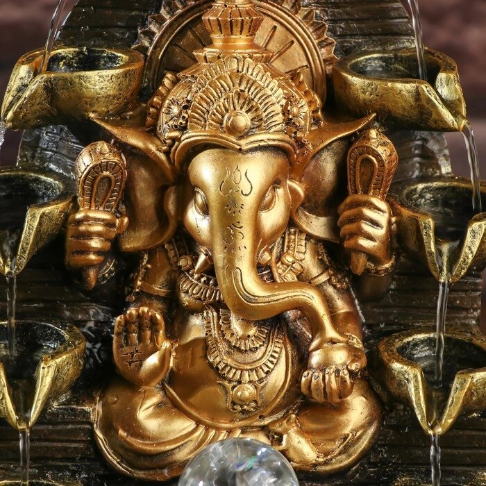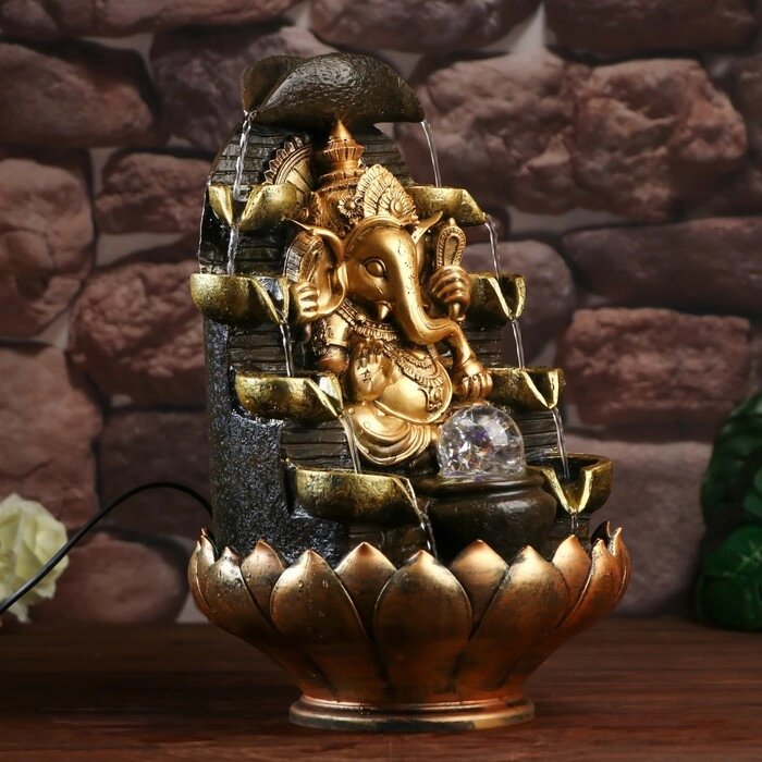 Фонтан настольный от сети, подсветка "Ганеша в храме" бронза 40х25х25 см
