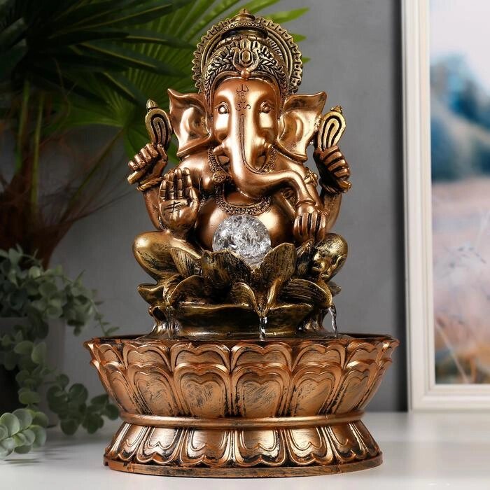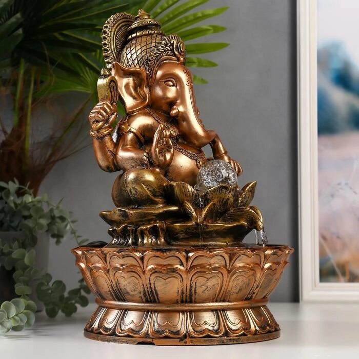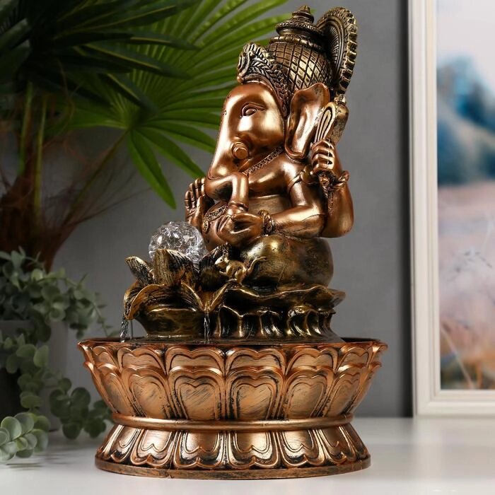 Фонтан настольный от сети, подсветка "Ганеша и лотос" 42х28х28 см