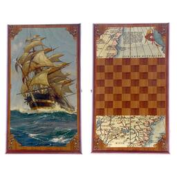 Нарды-шашки "Морские"доска дерево 50х50 см)