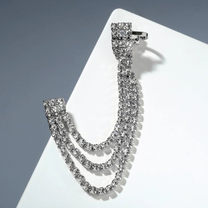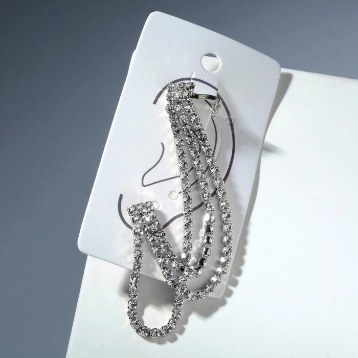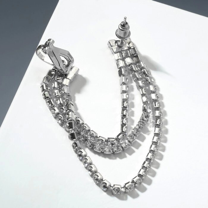 Серьга "Каффа" висячие нити, цвет белый в серебре