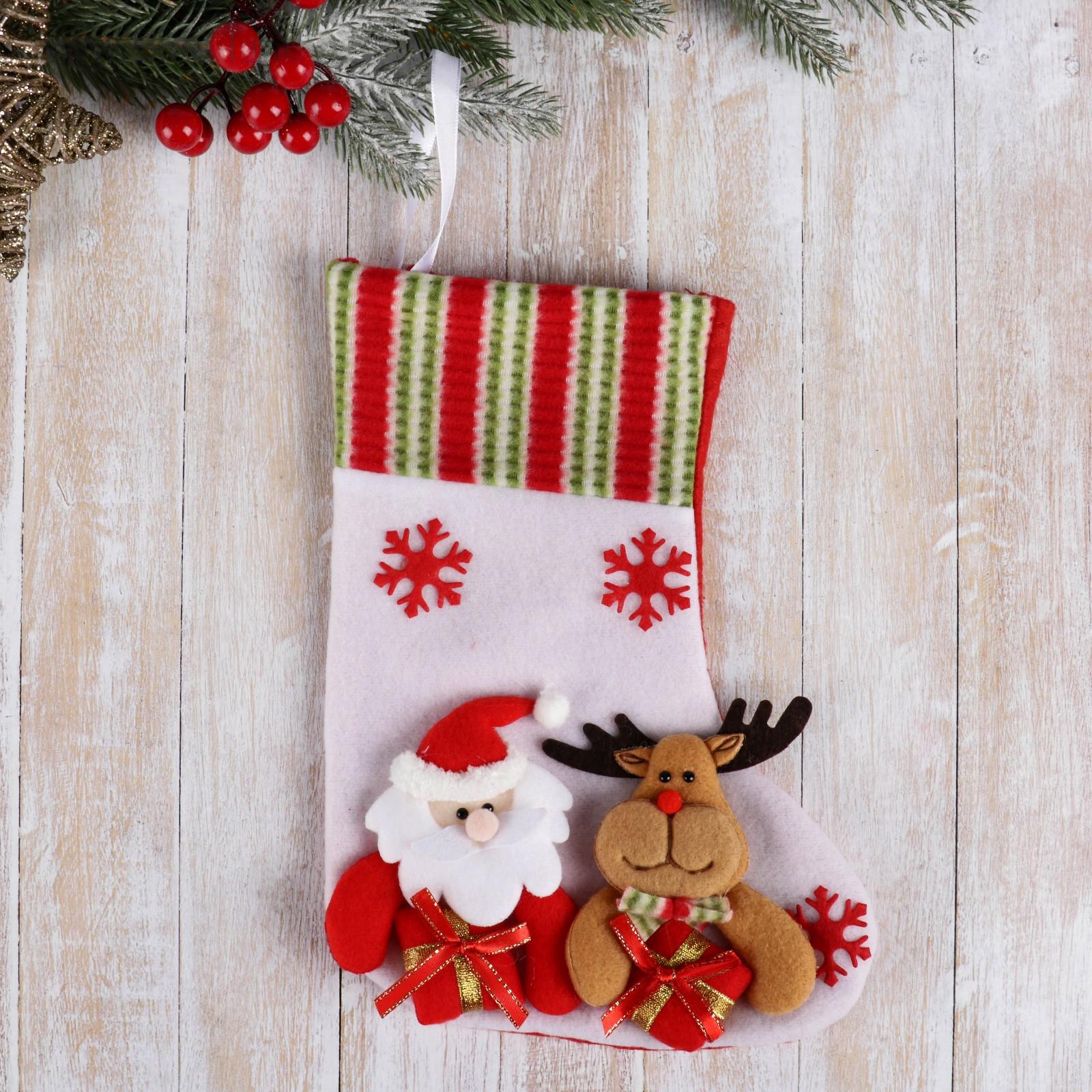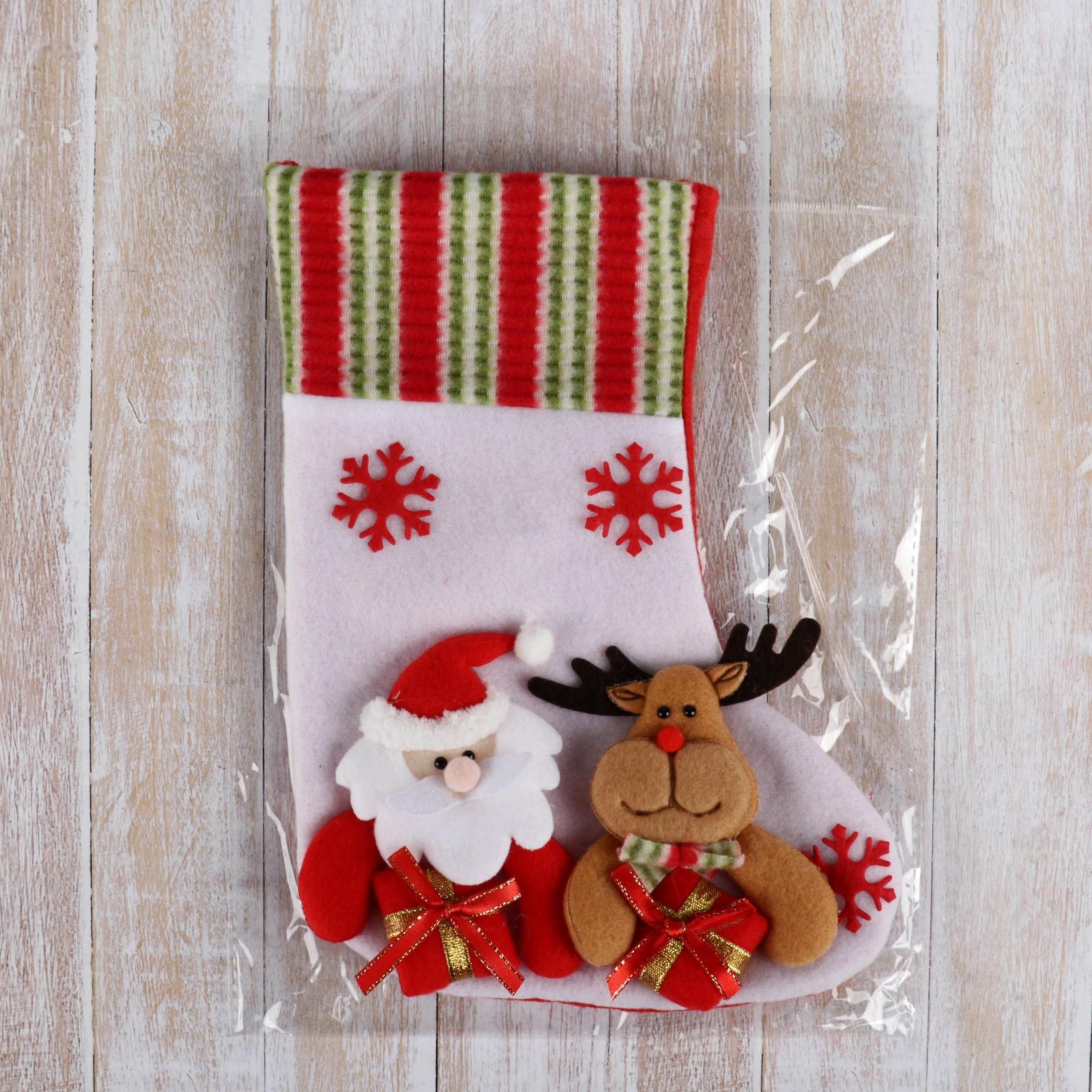 Носок для подарков "Дед Мороз с оленем" 26х18 см. бело-красный 718469