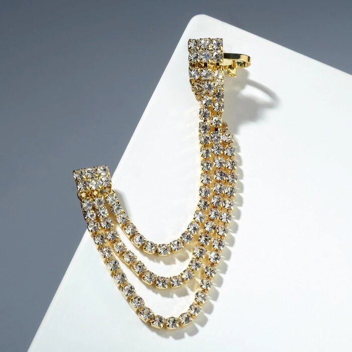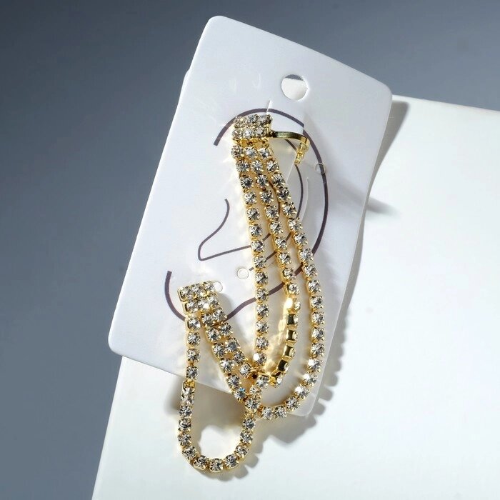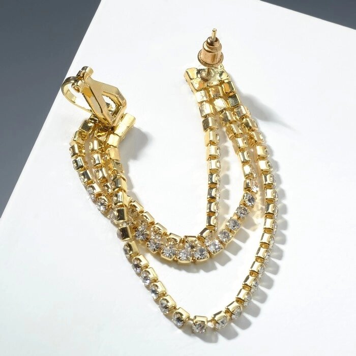 Серьга "Каффа" висячие нити, цвет белый в золоте