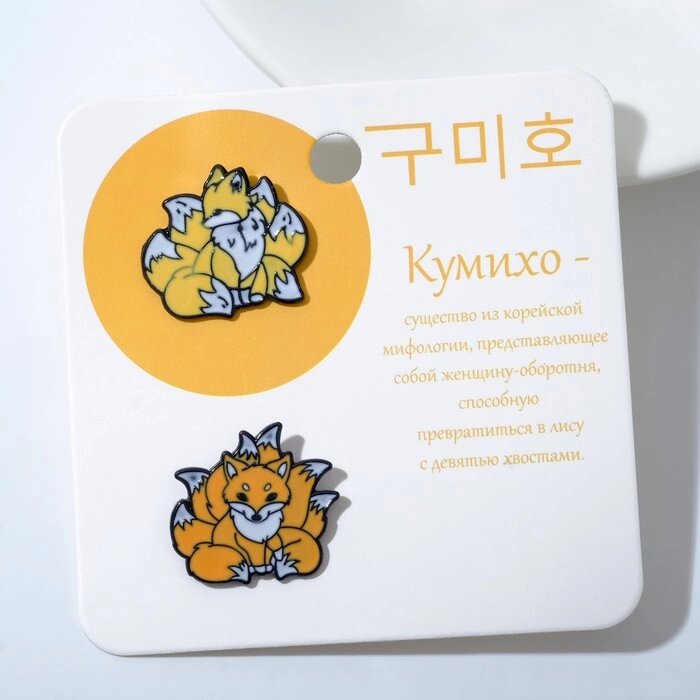 Набор значков (2шт) Лисы" пушистые хвосты, цветной в чёрном металле