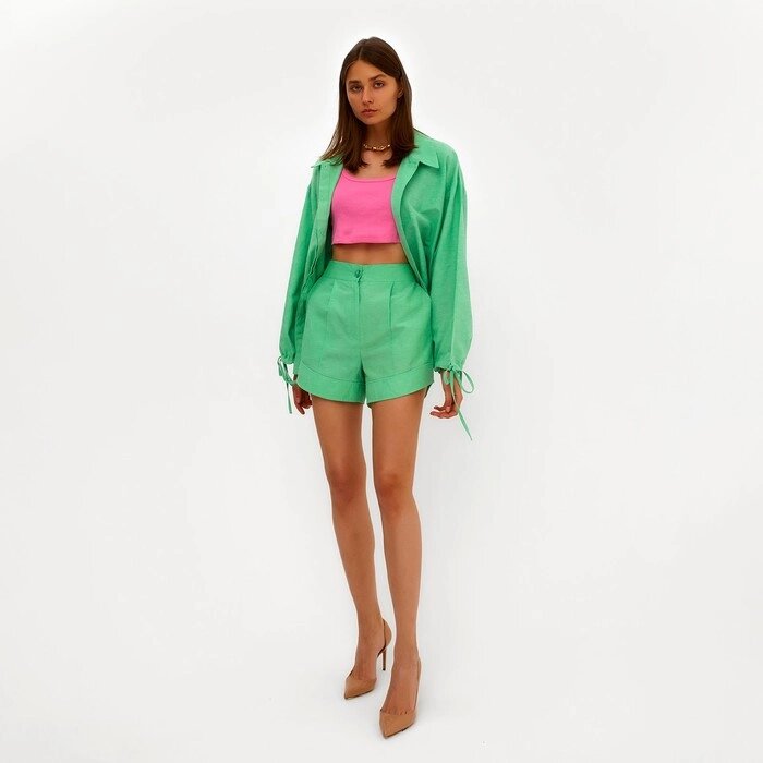Комплект женский (блузка, шорты) MINAKU: Casual Collection, цвет зелёный, размер 46