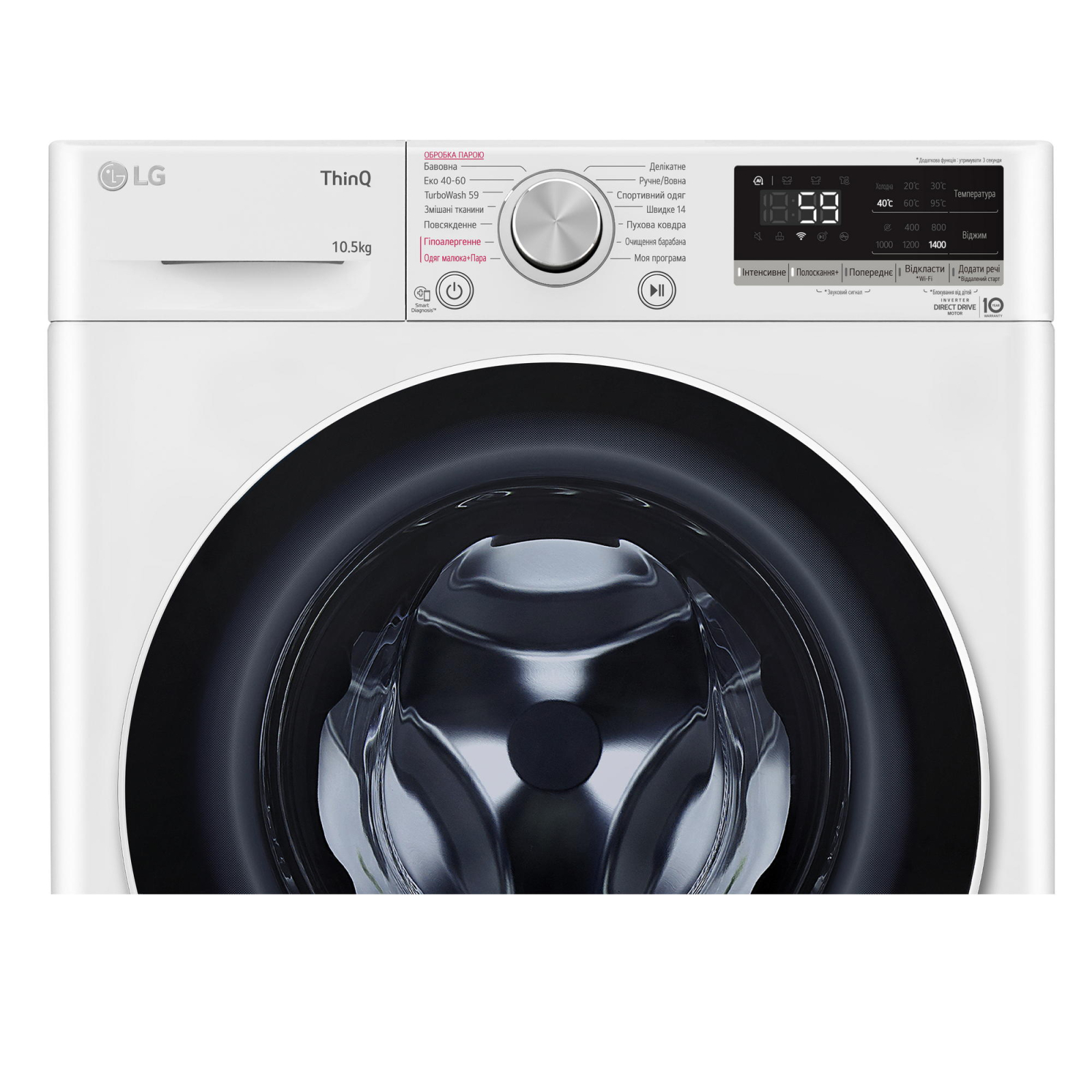 Елегантна накладка на дверцятах із загартованого скла стійкіша до подряпин, ударів і високих температур. Ребра барабана виготовлені з неіржавкої сталі, яка має антибактеріальні властивості.