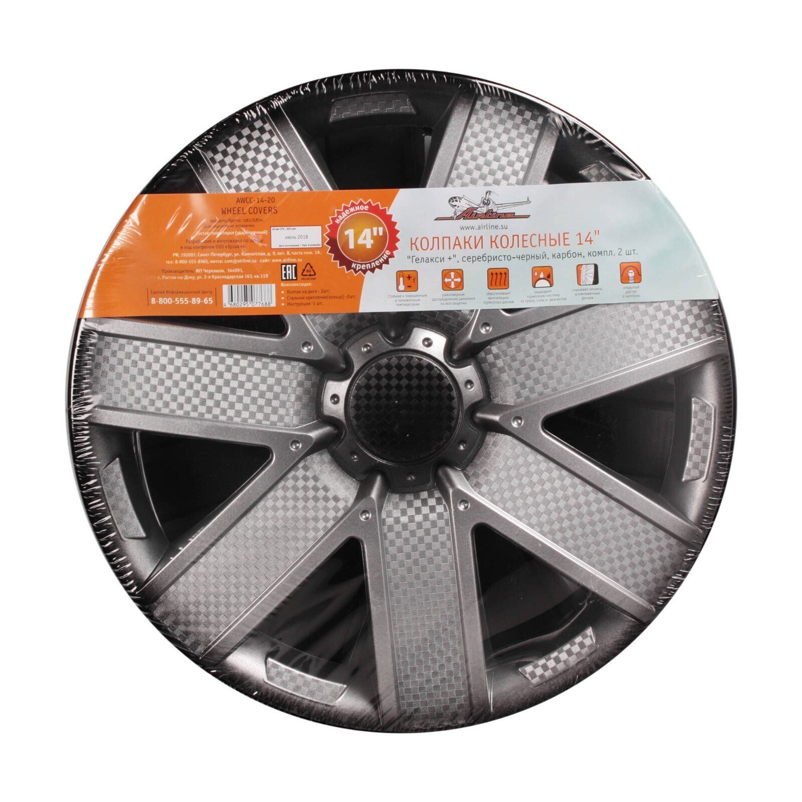 Колпаки колесные 14" "Гелакси +", серебристо-черный, карбон, компл. 2 шт 4424413