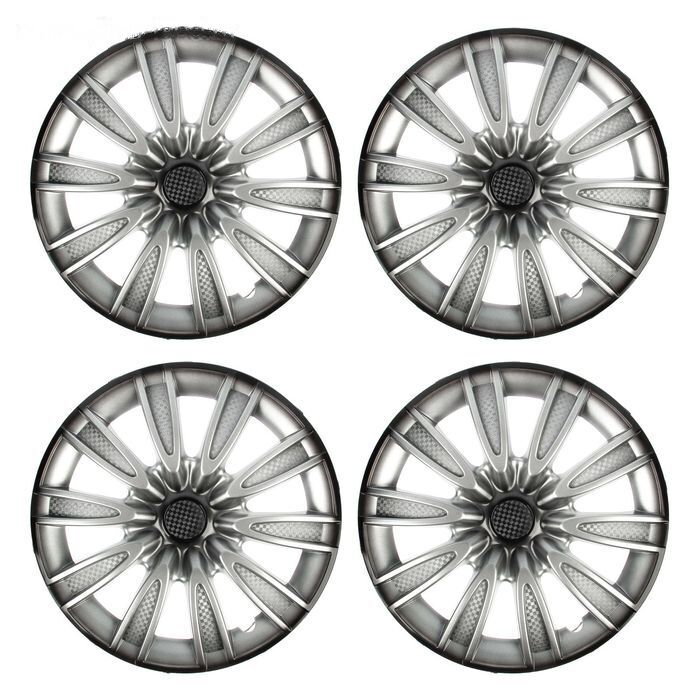 Колпаки колесные R14 Tornado, серебристо-черный карбон, набор 4 шт. 2471870