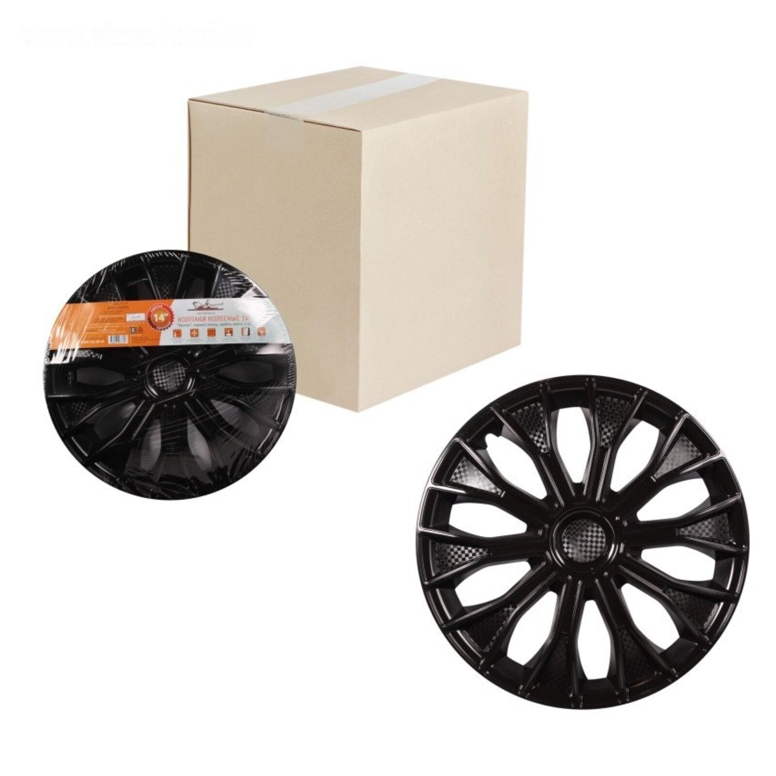 Колпаки колесные 15" "Волтек", черный глянец, карбон, компл. 2 шт 4424420