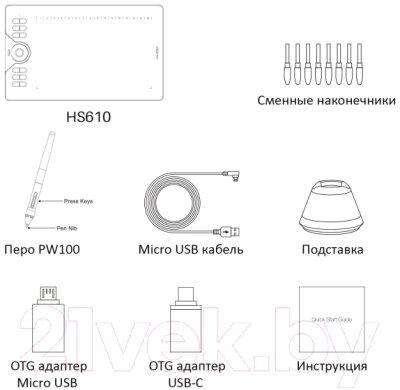 • Комплектация адаптер, перо, документация, кабель USB, набор наконечников, подставка для пера