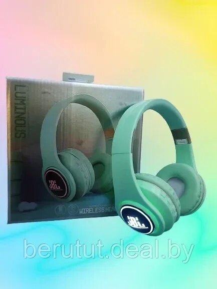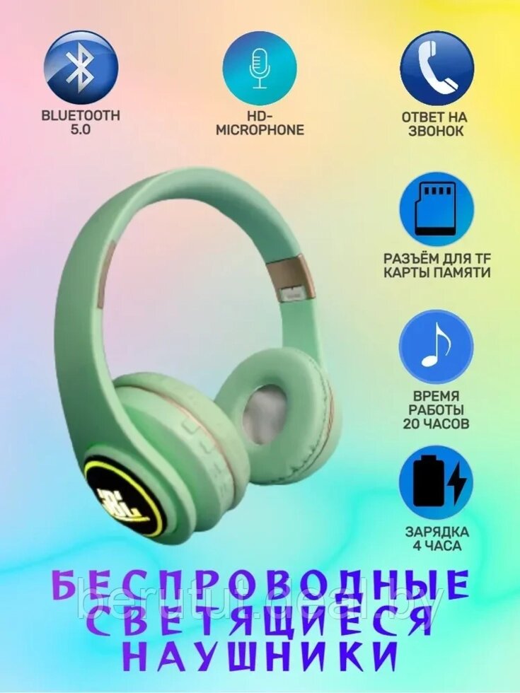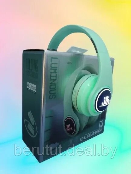 Беспроводные светящиеся Bluetooth наушники (накладные полноразмерные) JBL T13