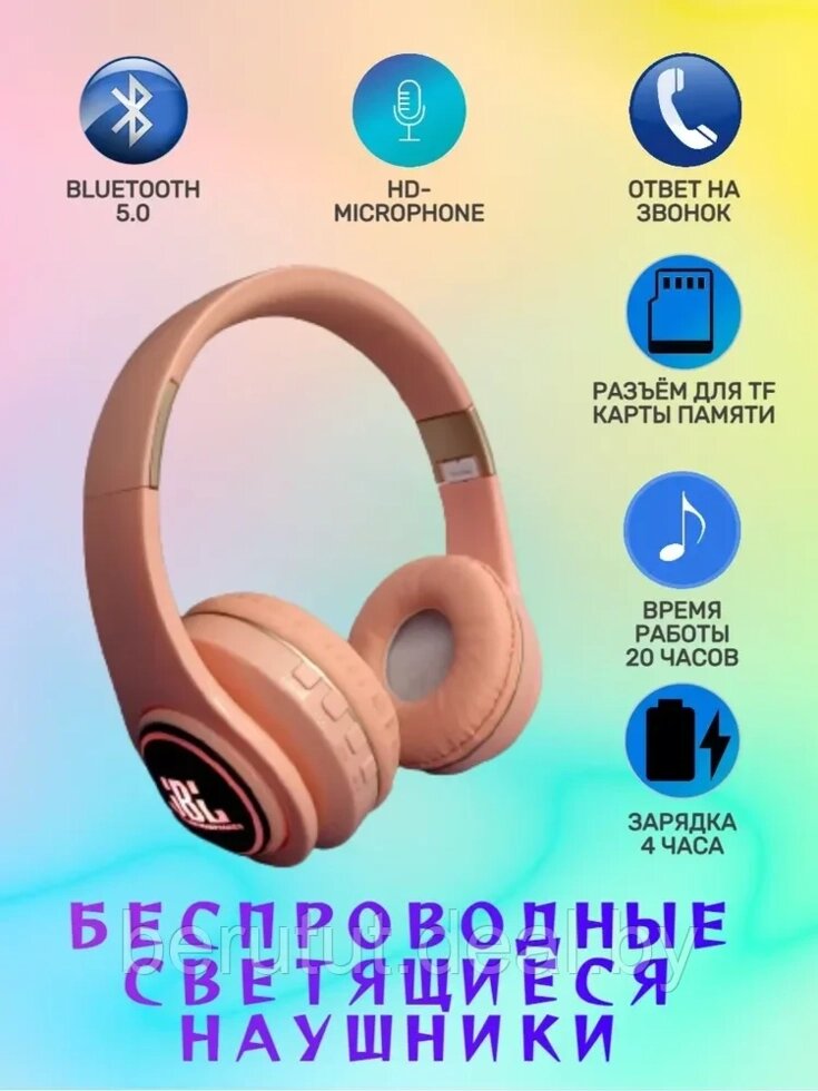 Беспроводные светящиеся Bluetooth наушники (накладные полноразмерные) JBL T13
