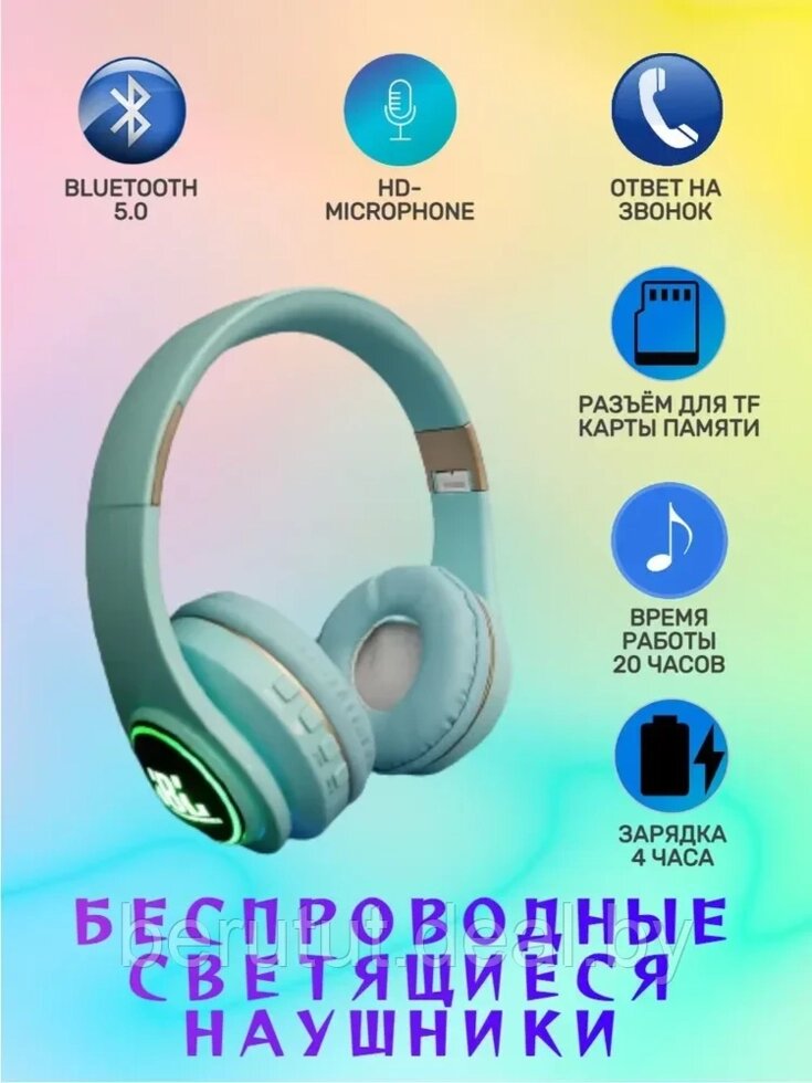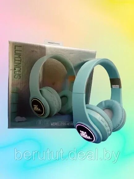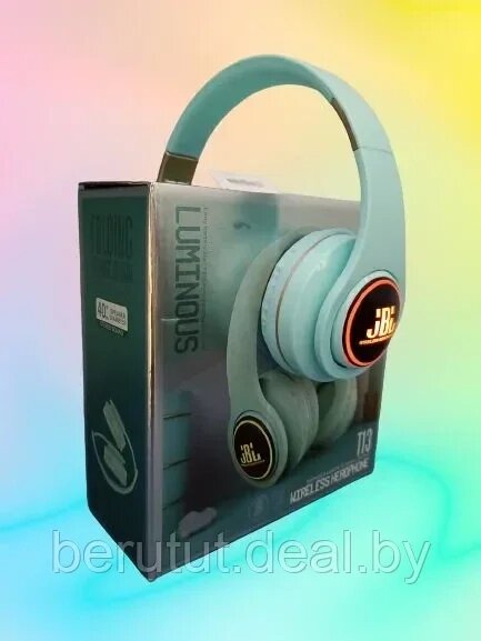 Беспроводные светящиеся Bluetooth наушники (накладные полноразмерные) JBL T13 Голубой