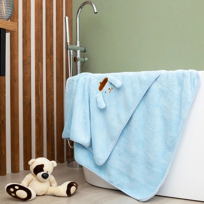 Полотенце детское Крошка Я «Зайчик», 70х140 см, цвет голубой, 100% полиэстер, 360г/м2