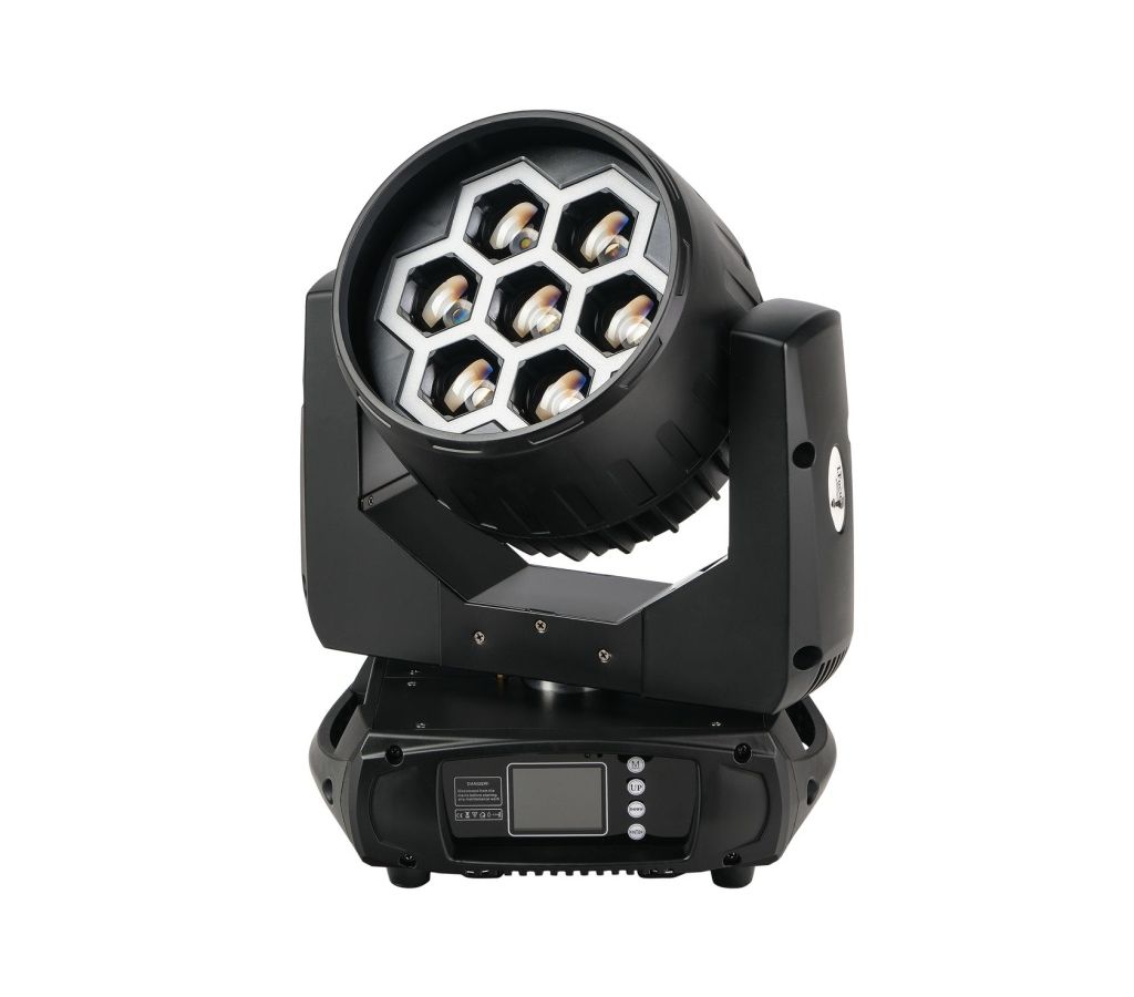 Мощные светодиоды 7х40Вт, легкая конструкция, плавные линии и меняющие цвет световые полосы, привлекающие внимание. Каждый светодиод управляется отдельно, цвет светодиодной ленты можно варьировать, чтобы сделать сцену визуально ослепляющей. Линейный зум от 6 до 60 градусов обеспечивает прекрасное мас шт.абирование сцены.