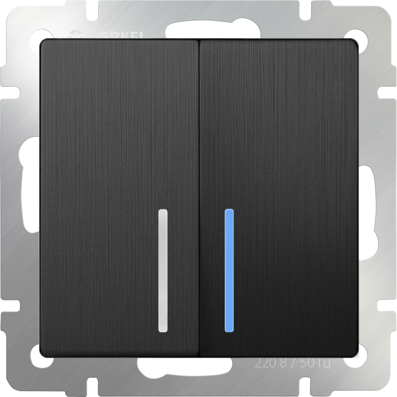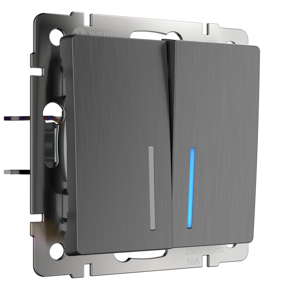 Выключатель двухклавишный с подсветкой Werkel графит рифленый W1120104 (WL04-SW-2G-LED)