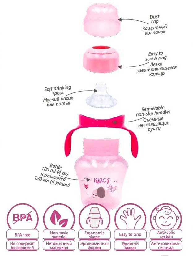 Поильник NDCG Mother Care / ND-4613 (120мл, розовый)