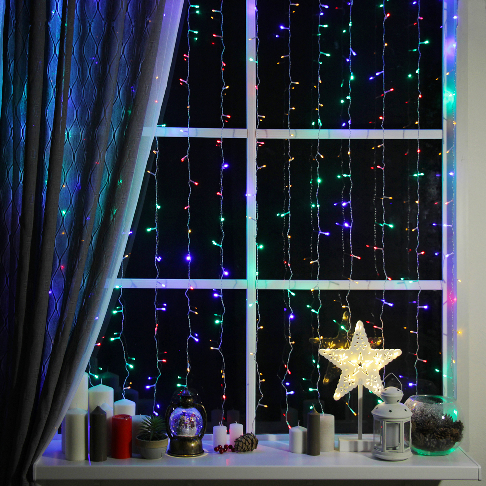 Гирлянда «Занавес» 2 × 1.5 м, IP20, прозрачная нить, 360 LED, свечение мульти, 8 режимов, 220 В 1080461