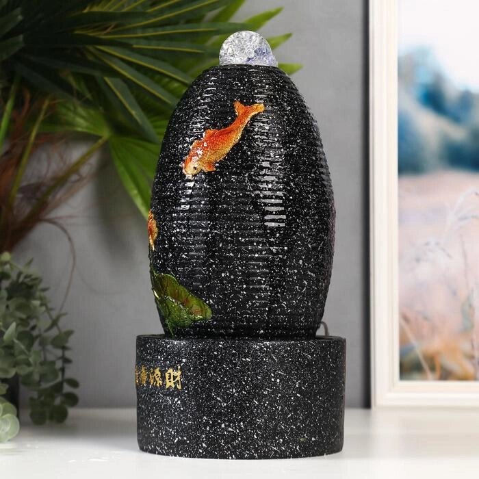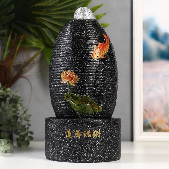 Фонтан настольный полистоун от сети "Золотой карп и лотос" 38х18х18 см