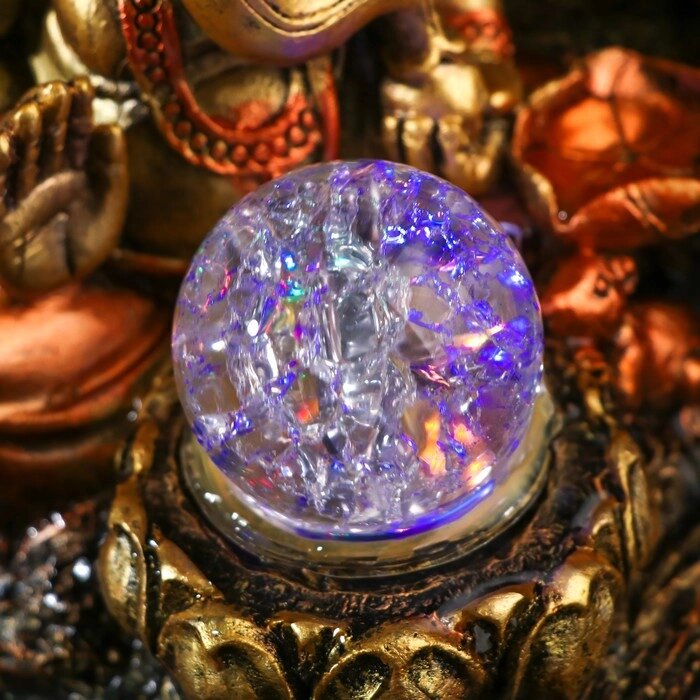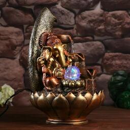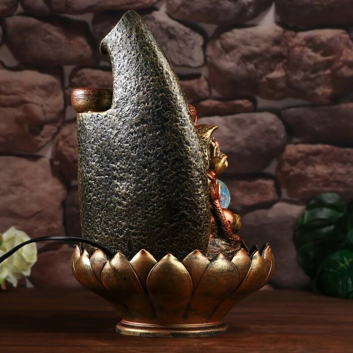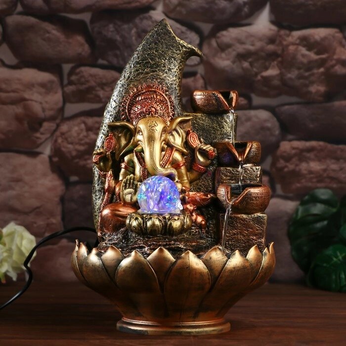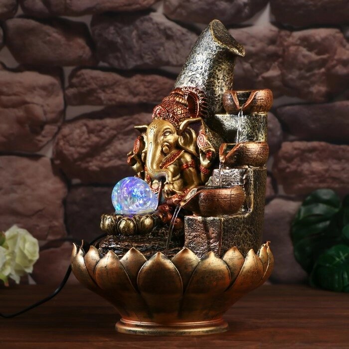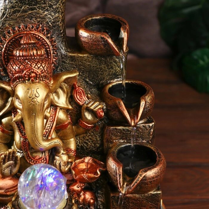 Фонтан настольный от сети, подсветка "Ганеша с чашами" красно-золотой 40х25х25 см