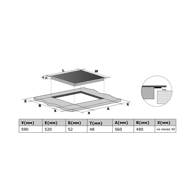 - Размеры ниши для встраивания (В*Ш*Г) х56х49