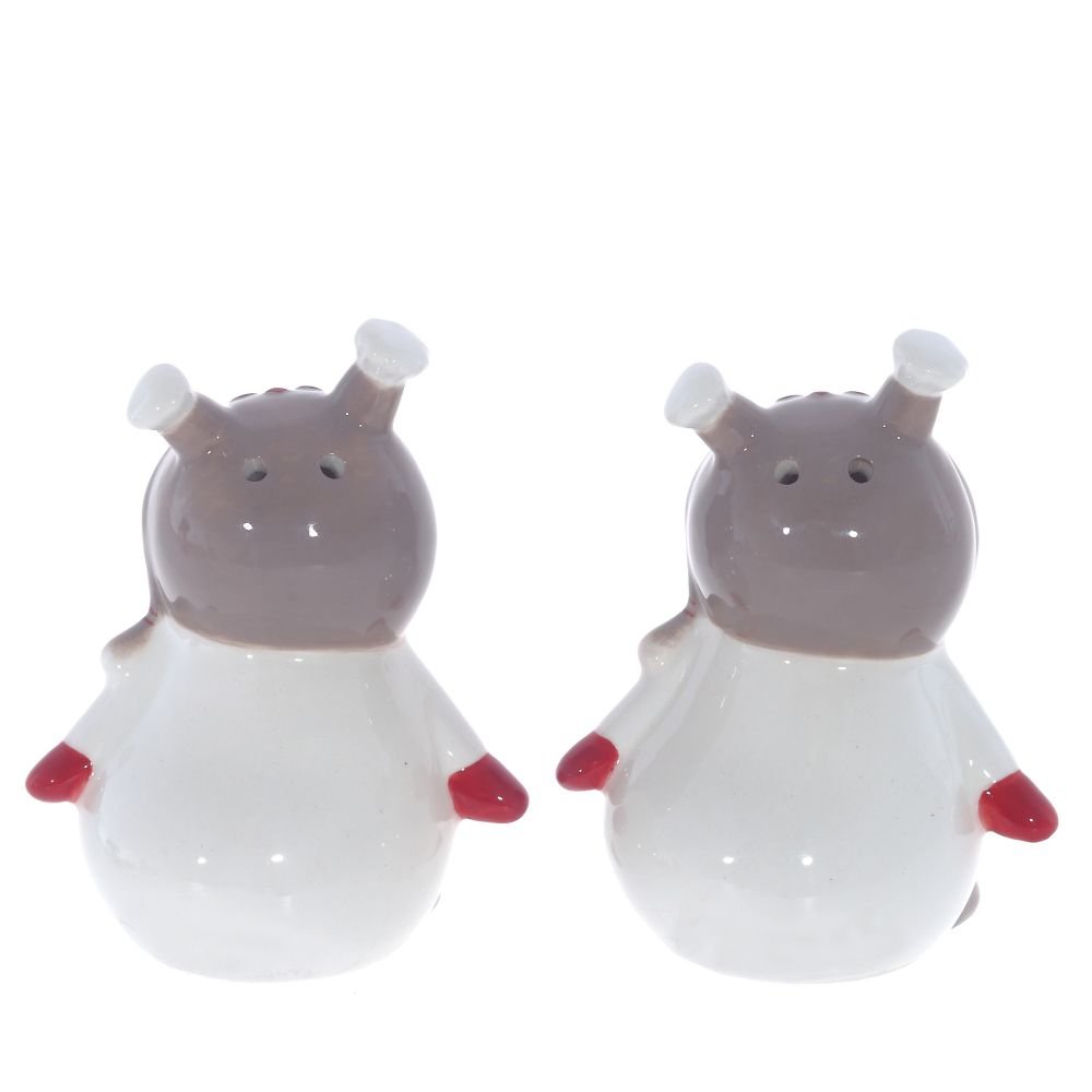 Солонка и перечница из серии "Снеговик" станут оригинальным украшением праздничного стола. Функциональные предметы из прочной керамики раскрашены вручную и покрыты износостойкой эмалью, которая придает им нарядное глянцевое сияние. Яркие изделия могут стать прекрасным подарком к зимним праздникам. В наборе: 2 шт.