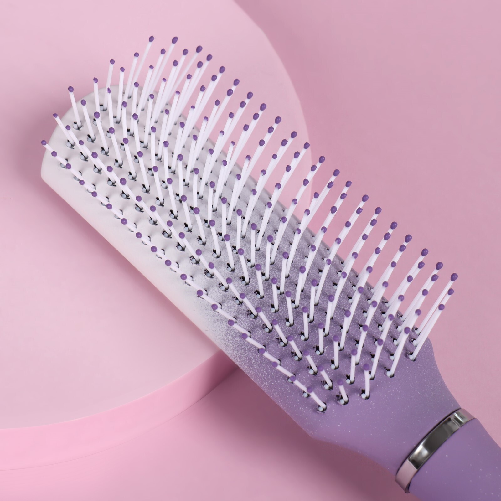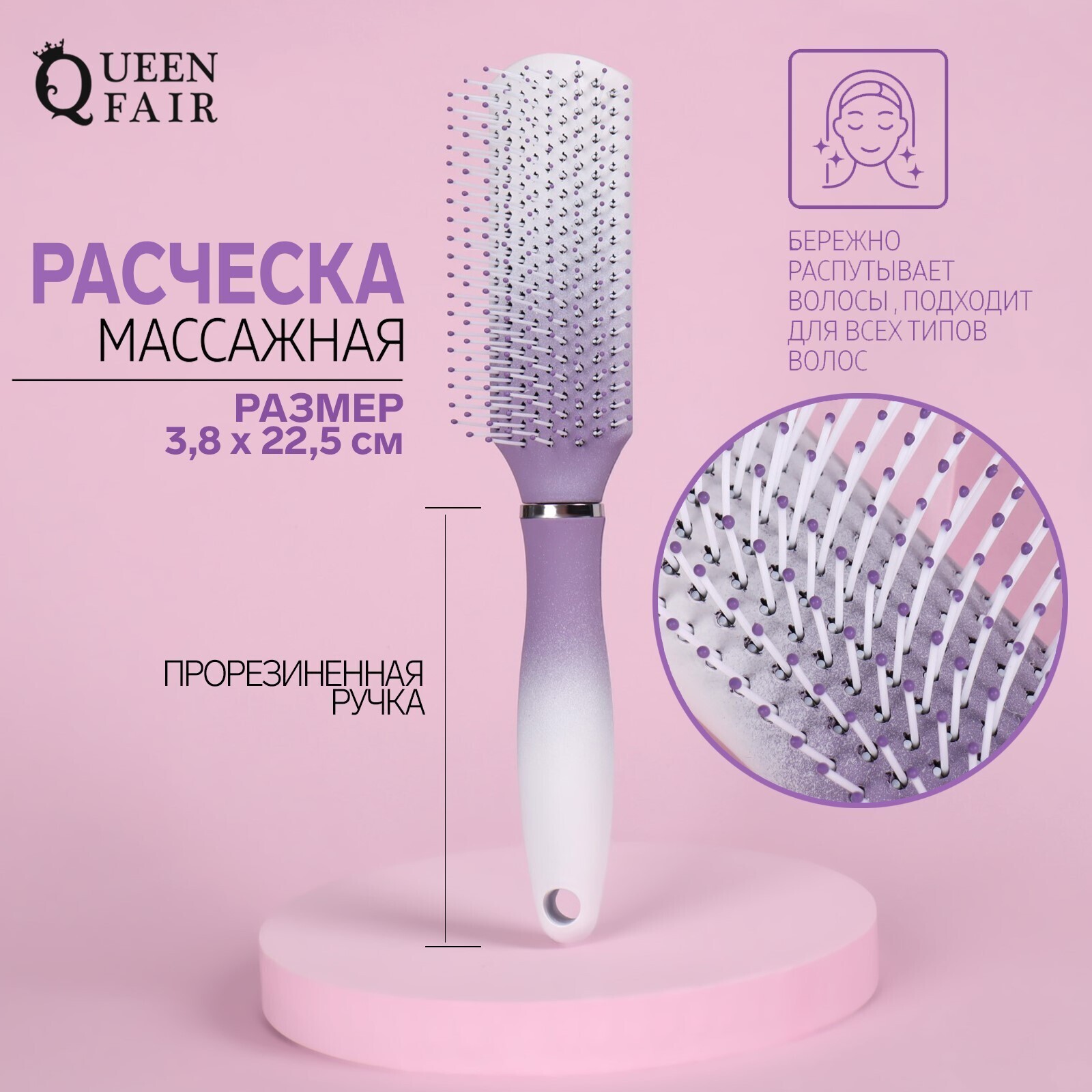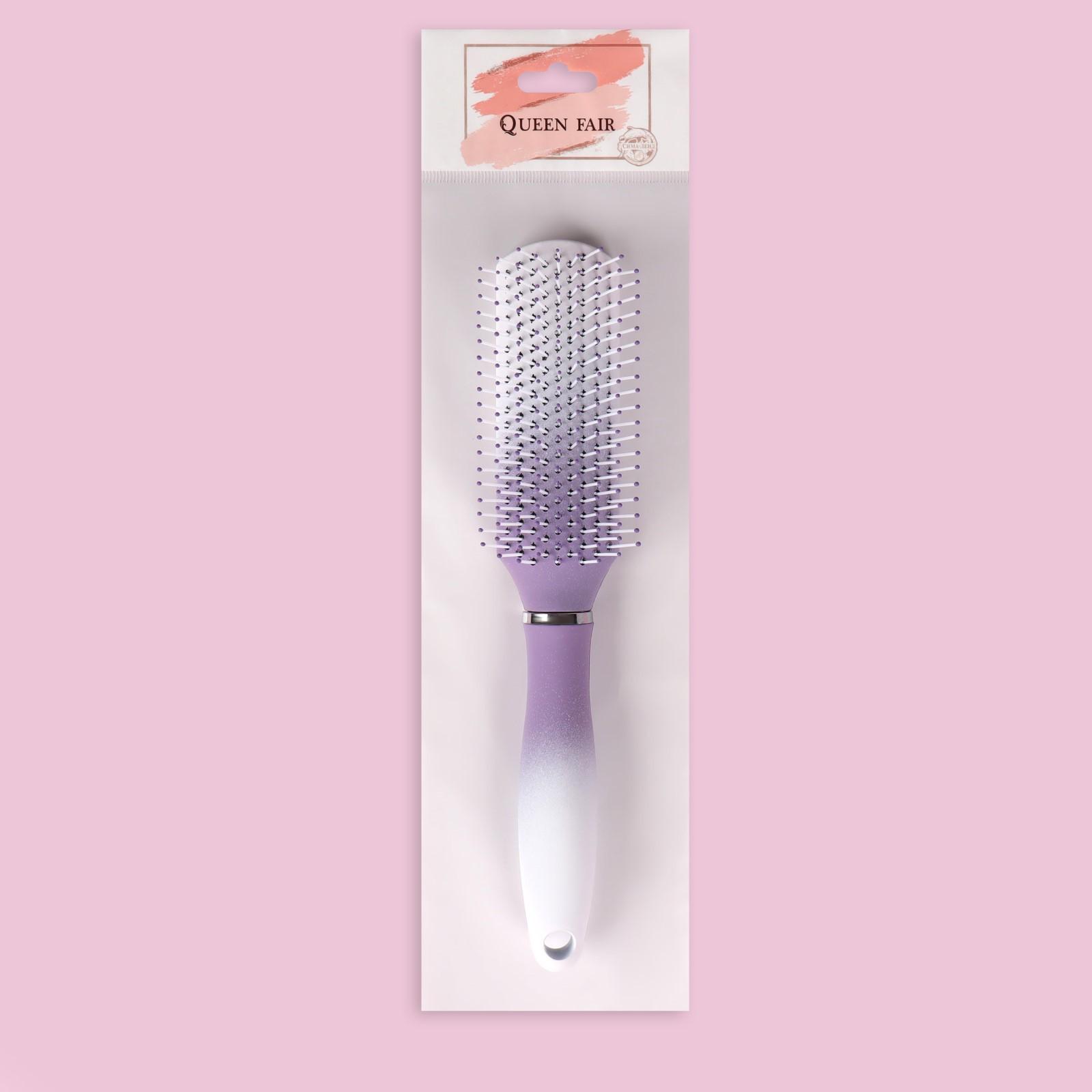 Расчёска массажная, прорезиненная ручка, 3,8 × 22,5 см, цвет белый/фиолетовый 7559956