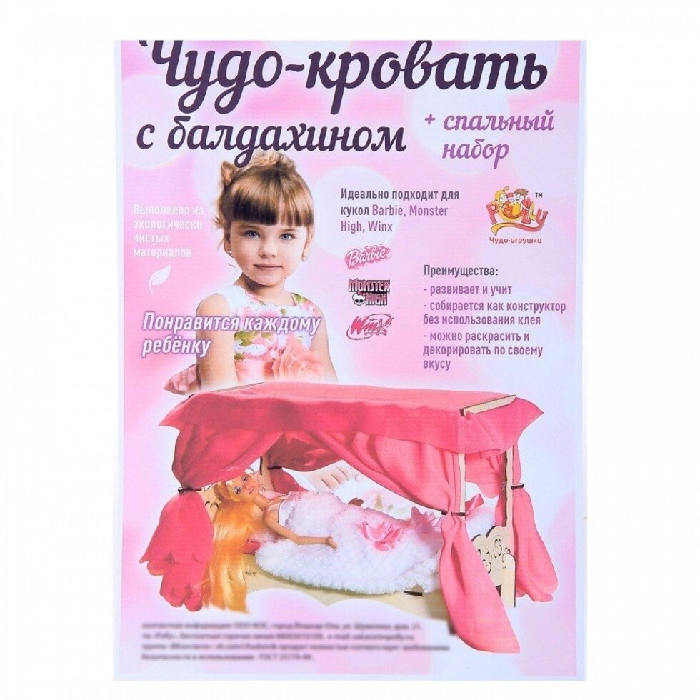 Мебель для кукольного домика Polly Чудо-кровать с балдахином и спальным набором арт. ДК-2-04