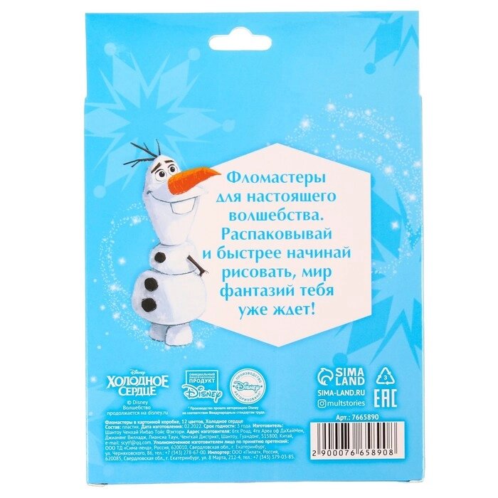 Фломастеры, 12 цветов, в картонной коробке, Холодное сердце