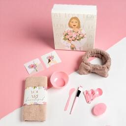 • В наборе открытка, полотенце, столовый прибор (набор), спонж, повязка на голову, кисть (для нанесения маски)