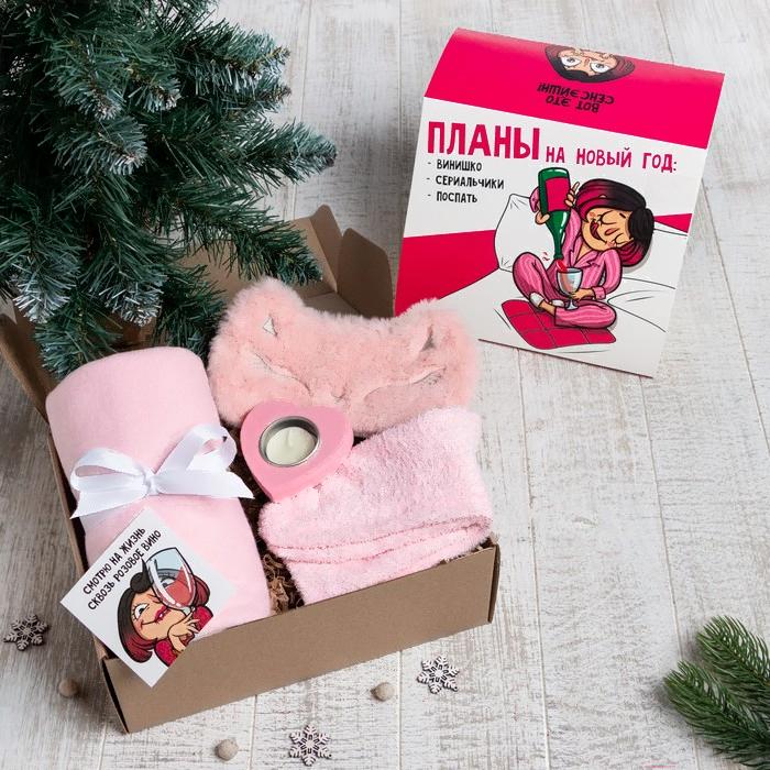 • В наборе открытка, носки, подсвечник, плед, маска для сна
