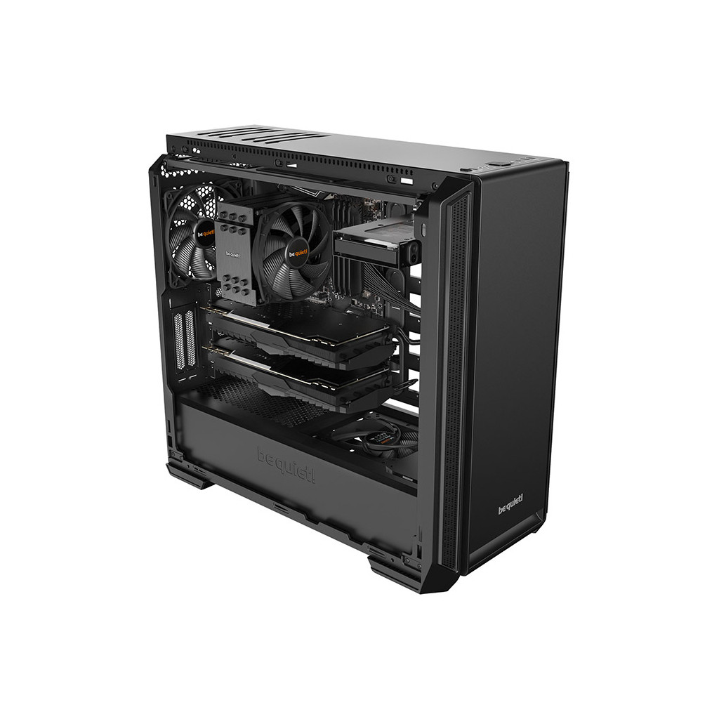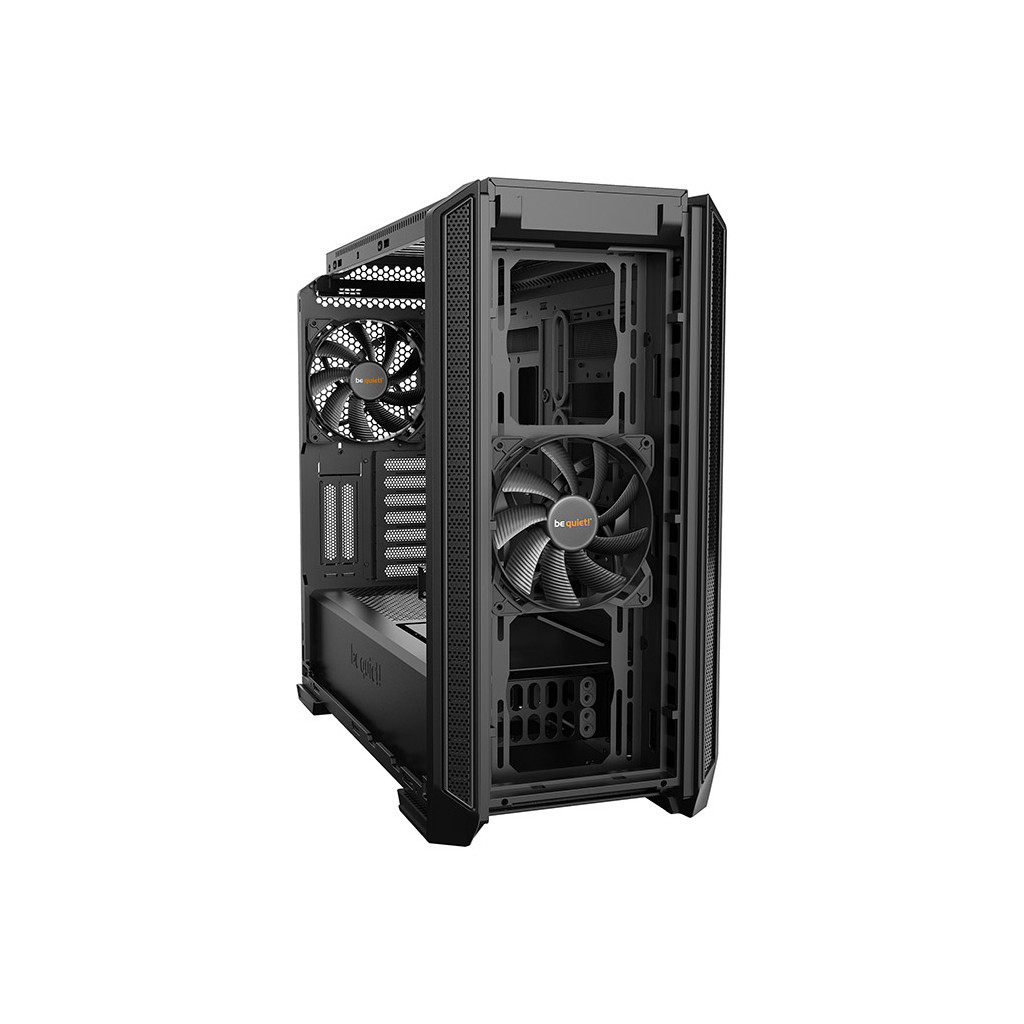 Мінімальний рівень шуму і чудова циркуляція повітря Повітрозабірники фронтальної панелі забезпечують максимальну тишу та ефективну вентиляцію повітря. Спеціальна конструкція вентиляційних отворів двічі змінює напрямок повітряного потоку для зменшення шуму. Товстий шар звукоізолюючих матеріалів для максимальної тиші Фронтальна, верхня та бокові панелі оснащені 10мм шаром шумопоглинаючих матеріалів, що забезпечують ефективну звукоізоляцію. Ізольований кронштейн блоку живлення і слоти HDD запобігають передачі вібрацій. Повністю металеве шасі забезпечує жорсткість та надійність корпусу. Безшумна робота Два встановлених вентилятори Pure Wings 2 140mm з оптимізованими для кращого повітряного потоку лопатями забезпечують високий повітряний потік та надійне охолодження. Трьохпозиційний контролер вентиляторів підтримує управління швидкістю обертання до трьох вентиляторів. Забезпечує акуратний інтер'єр Кожух блоку живлення приховує кабелі, блок живлення та подвійний слот HDD. З'ємні сегменти кожуха дозволяють встановити на нього додатковий 120мм вентилятор або розмістити радіатор СВО довжиною до 360мм у передній частині корпусу. Спеціальний кронштейн дозволяє легко встановити блок живлення у корпус ззовні. Простий доступ до всіх компонентів системи Бокові панелі оснащені системою push-pin для надійності та зручності їх демонтажу. При натисканні на штифт запірний механізм звільняє верхню кромку панелі та надійно утримує панель до її демонтажу користувачем. Чудова практичність для швидкого і простого доступу до внутрішнього простору корпусу. Створений з врахуванням high-end обладнання Незважаючи на компактну конструкцію, Silent Base 601 забезпечує величезний внутрішній простір та монтажні отвори для установки материнських плат формату E-ATX. Продумана компоновка корпусу підтримує установку кількох відеокарт та систем охолодження великих розмірів. Оптимізований для систем водяного охолодження Оптимізована конструкція Silent Base 601 ідеально підходить для установки систем водяного охолодження. Радіатори довжиною до 360мм можуть бути розміщені у фронтальній, верхній або тильній частині корпусу. Використання з'ємного кронштейну дозволяє швидко та легко встановити радіатор у верхній частині шасі. Ідеальний вид інтер'єру вашого ПК Елегантна прозора бокова панель забезпечує ідеальний вид на компоненти системи всередині корпусу. Панель виконана із загартованого тонованого скла з затемненням по кромкам.