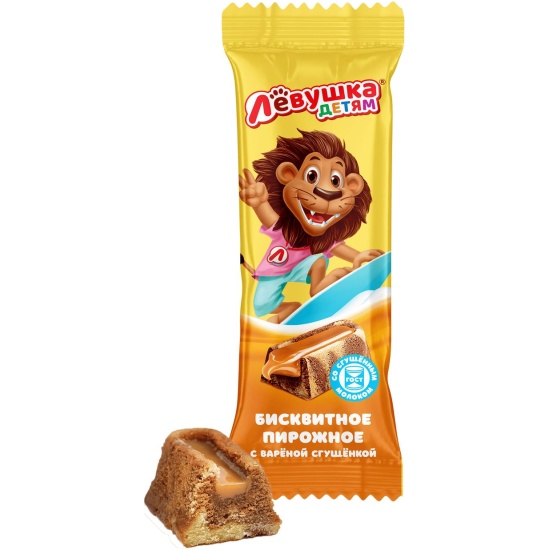 Пирожное СЛАВЯНКА "Лёвушка детям" с варёной сгущенкой 140 гМраморный бисквит в сочетании с нежной варёной сгущёнкой